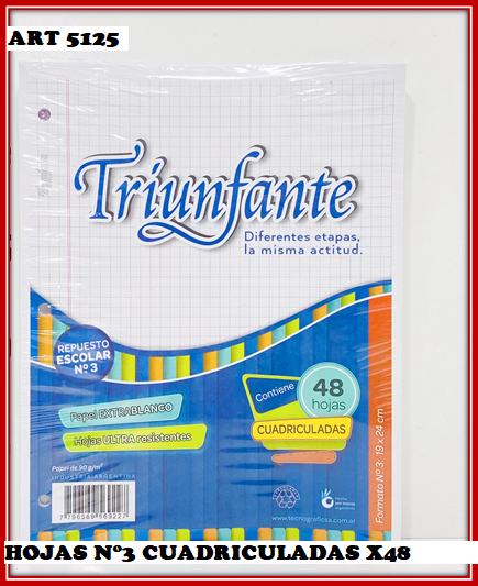 ART 5125 HOJAS N°3 TRIUNFANTE CUADRICULADAS X48