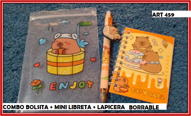 ART 459 COMBO BOLSITA + MINI LIBRETA + LAPICERA BORRABLE