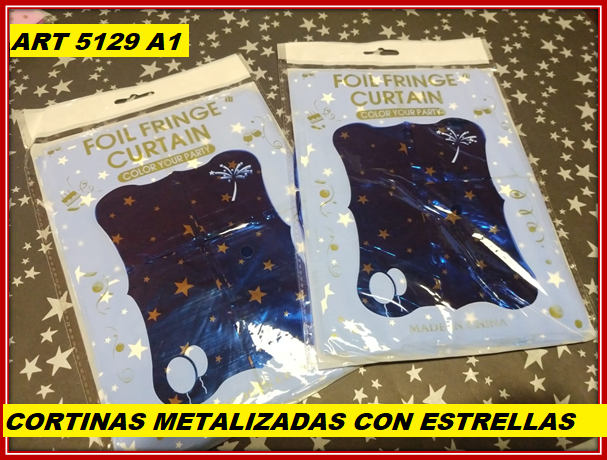 ART 5129 CORTINA METALIZADA CUADRADITOS CON ESTRELLAS AZUL