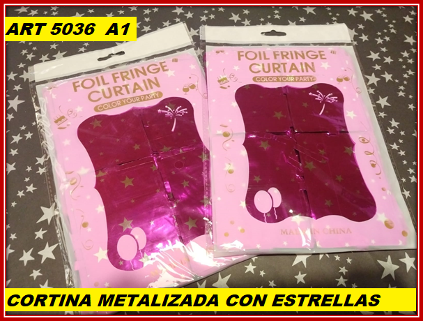 ART 5036 CORTINA METALIZADA CUADRADITOS CON ESTRELLAS FUXIA